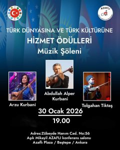 Merkezi Ankara’da bulunan Azaflı Sosyal Yardım ve Kültür Derneği Türk dünyasına ve Türk kültürüne uzun yıllar boyunca hizmet etmiş, alanlarında kıymetli katkılar sunmuş isimleri onurlandırmak amacıyla düzenlenen ” Türk Dünyasına ve Türk Kültürüne Hizmet Ödülleri Töreni ” 30 Ocak 2026 tarihinde gerçekleştirilecektir.